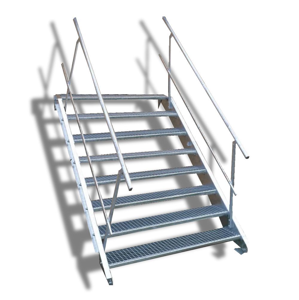 - Stahltreppe / Gitterrosttreppe / Wangentreppe verzinkt mit 8 Stufen / Geschosshöhe 120 - 160cm (pro Stufe eine Geschosshöhe von 15-20cm)/ Stufenmaße 80 cm x 24 cm