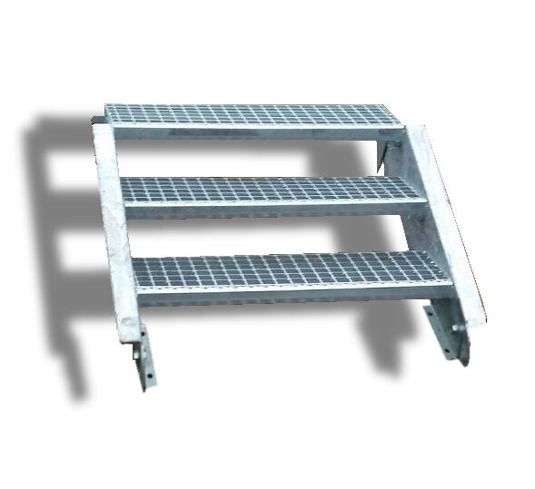 - Stahltreppe / Gitterrosttreppe / Wangentreppe verzinkt mit 3 Stufen / Geschosshöhe 45 - 60cm (pro Stufe eine Geschosshöhe von 15-20cm)/ Stufenmaße 130 cm x 24 cm