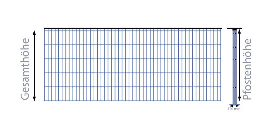 Somit ergibt sich für diese Zaun-Komplett-Set eine Gesamtlänge von 42,5 m. Die Drahtstärke der Zaunfelder in diesem Doppelstabmatten-Zaun-Komplett-Set in Anthrazit ist 6/5/6 mm.