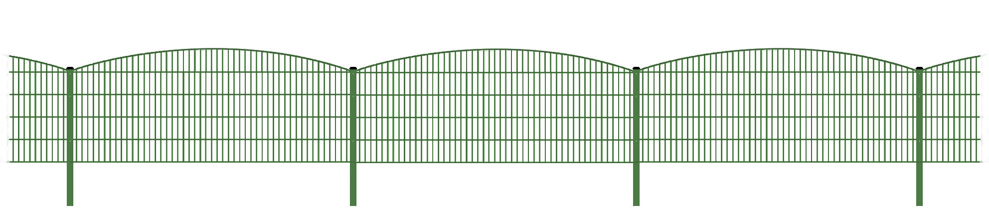 - 23 Rundbogen-Dekorzaun-Doppelstabmatten, Stärke 6 / 6 / 6 mm, Farbe Grün, Höhe 101 cm
