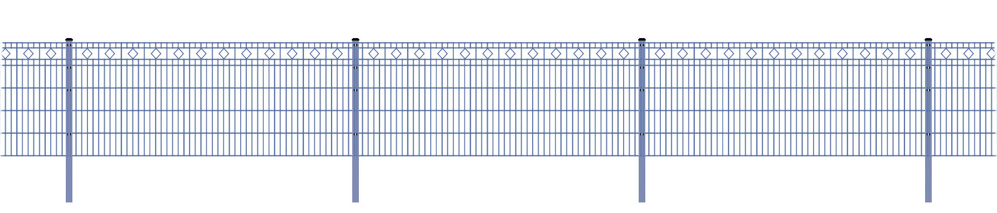 Der obere Schmuckbereich dieses Gartenzauns ist in regelmäßigen Abständen mit Rauten versehen und setzt damit ein optisches Highlight für Ihre neue Garteneinfriedung, so dass man sich mit diesem Schmuckzaun dezent von den sonst häufig zu findenden normalen Doppelstabmattenzäunen absetzen kann. Das unterstreicht den individuellen Charakter, wertet das gesamte Grundstück auf und ist dennoch klassisch und keinem Trend unterworfen.