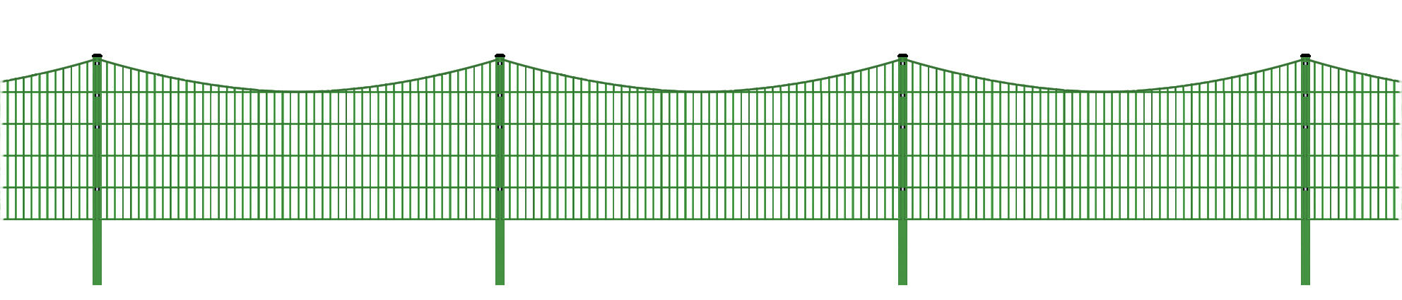 Schmuckzaun / Doppelstabmattenzaun Bogen konkav Komplett-Set / Grün / 121cm hoch / 17,5m lang