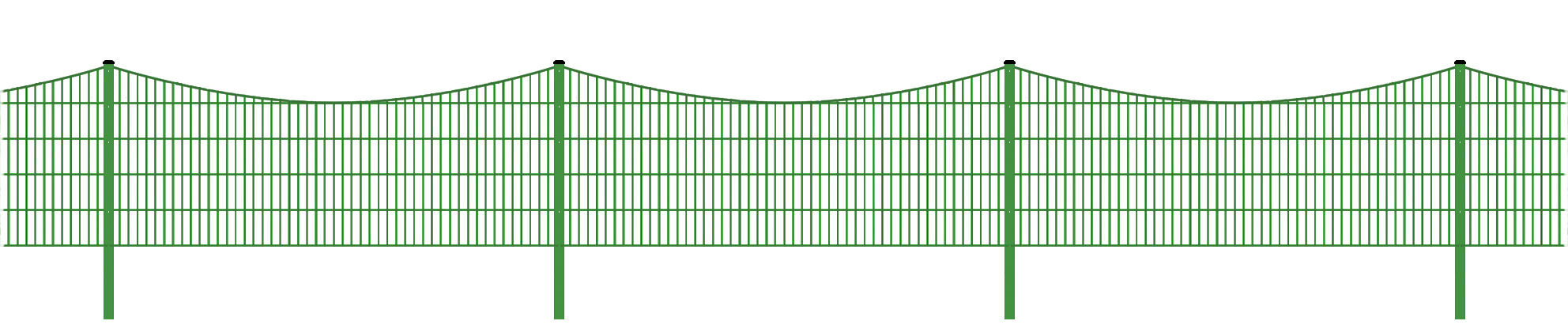 Produktinformationen Schmuckzaun / Doppelstabmattenzaun Bogen konkav Komplett-Set mit Abdeckleisten / Grün / 101cm hoch / 87,5m lang