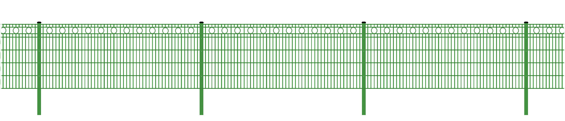 - 39 Schmuckzaun-Doppelstabmatten mit Kreis-Dekor, Stärke 6 / 6 / 6 mm, Farbe Grün, Höhe 141 cm