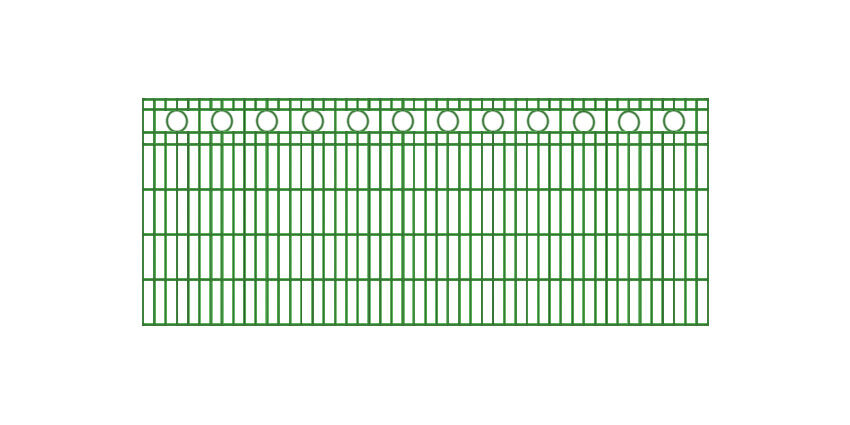 • 39 Schmuckzaun-Doppelstabmatten mit Kreis-Dekor, Stärke 6 / 6 / 6 mm, Farbe Grün, Höhe 161 cm
