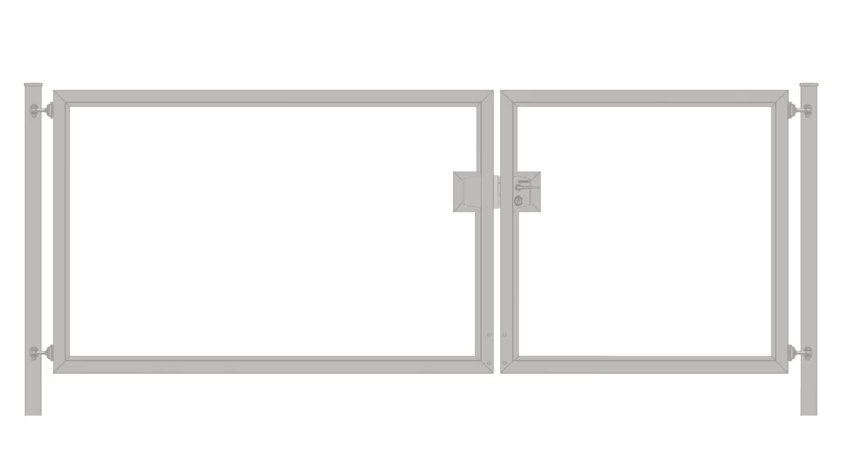 Produktinformationen Einfahrtstor / Gartentor Premium (2-flügelig) asymmetrisch für senkrechte Holzfüllung; verzinkt; Breite 250 cm x Höhe 100 cm