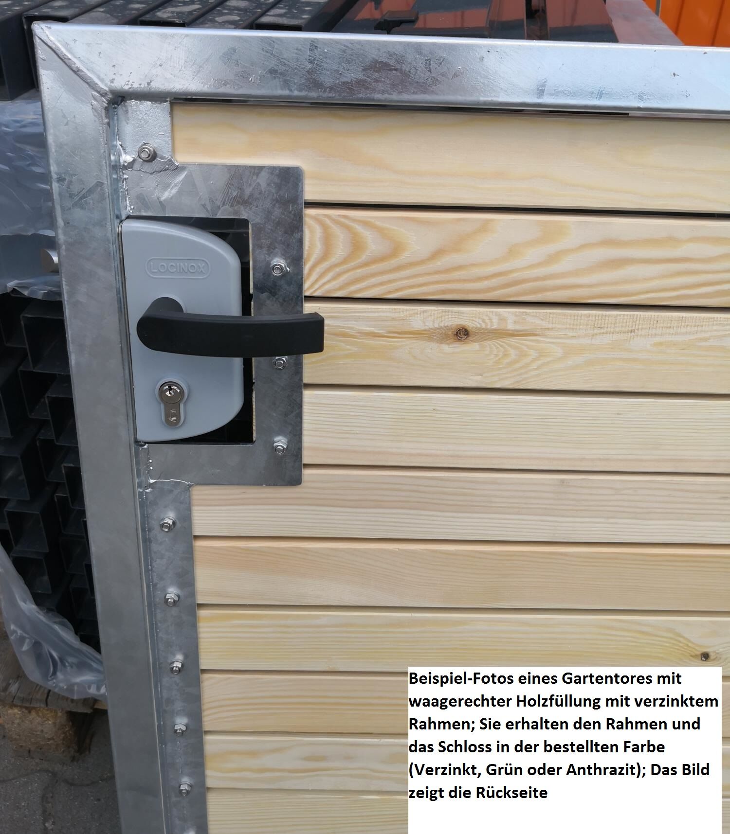 - Schloss: hochwertiges Industrieschloss inkl. Drückergarnitur; farblich passend