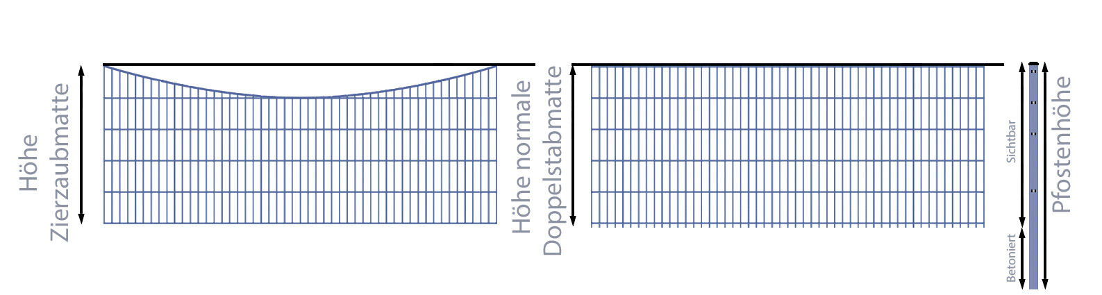 • 16 klassische Doppelstabmatten, Stärke 6 / 5 / 6 mm, Farbe Anthrazit, Höhe 161 cm
