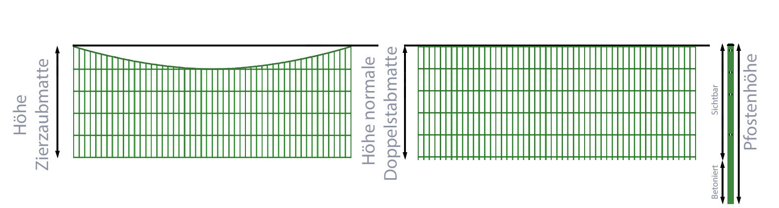 Weiterführende Links zu "Schmuckzaun / Doppelstabmattenzaun 2-in-1 Bogen konkav Komplett-Set / Grün / 181cm hoch / 90m lang"