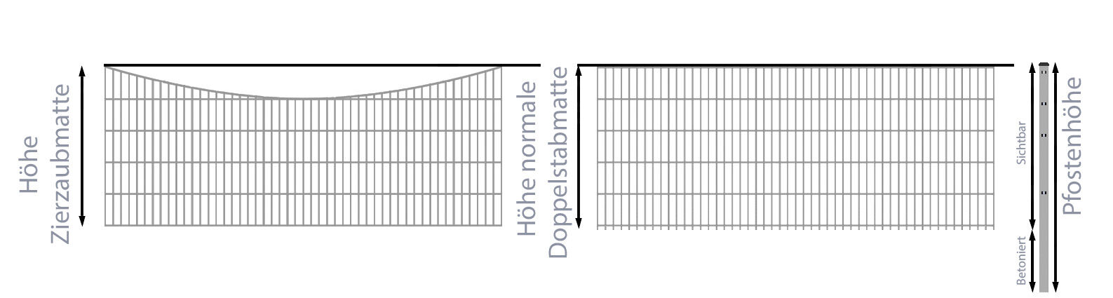 Weiterführende Links zu "Schmuckzaun / Doppelstabmattenzaun 2-in-1 Bogen konkav Komplett-Set / Verzinkt / 141cm hoch / 100m lang"
