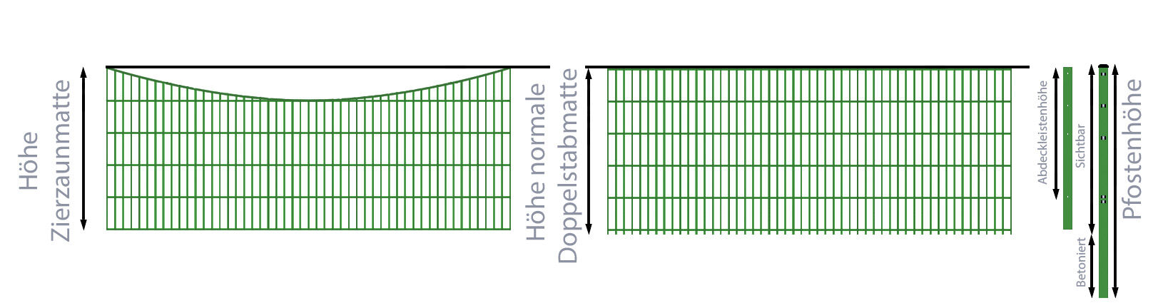 Weiterführende Links zu "Schmuckzaun / Doppelstabmattenzaun 2-in-1 Bogen konkav Komplett-Set mit Abdeckleisten / Grün / 101cm hoch / 60m lang"