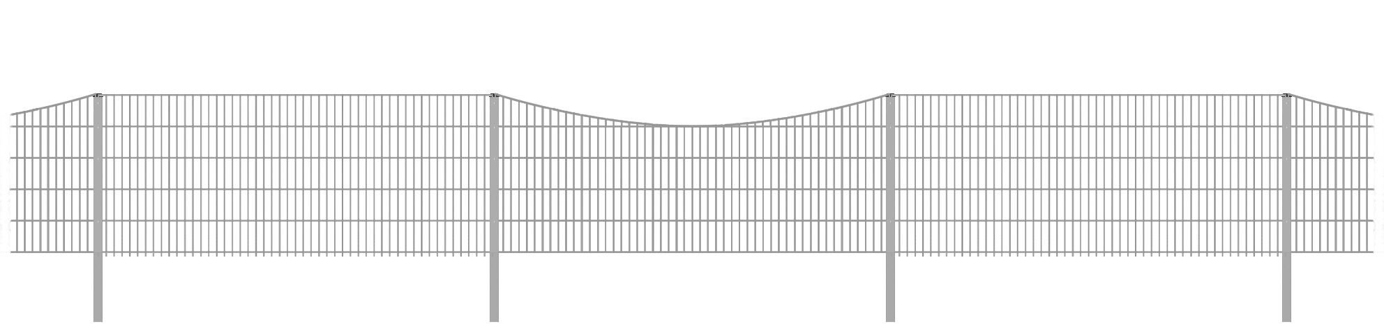 • 1 Rundbogen-Dekorzaun-Doppelstabmatten, Stärke 6 / 6 / 6 mm, Farbe Verzinkt, Höhe 121 cm