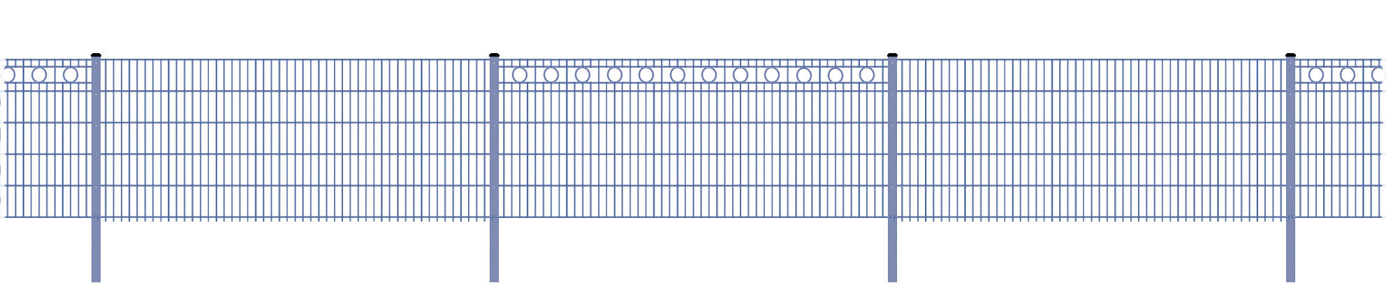 Das Dekor dieses Schmuckzauns ist gehört bei vielen Kunden zu den Favoriten im Bereich der Dekor- und Schmuckzäune und verbindet den klassischen Doppelstabmattenzaun mit der Optik von Schmuckzäunen, weil beide Zaunmatten im Wechsel gesetzt werden. Der eingefasste Kreis auf den Stabmatten bildet einen sehr schönen Abschluss und bietet zugleich mehr Abwechslung im Unterschied zu den reinen Doppelstabmatten-Zäunen. So kann man sich dezent von anderen Garteneinfriedungen absetzen und den individuellen Charakter des eigenen Gartens unterstreichen – ein Schmuckzaun mit 2 in 1-Kreis-Dekor ist ohne Frage ein optisches Highlight in jedem Garten.