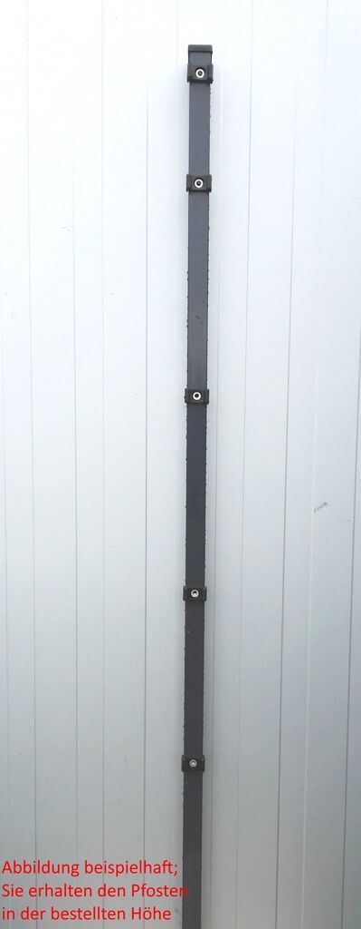 Der Pfosten einzeln / Anthrazit / für Zaunfeld 123 cm (180 cm) / inkl. Zubehör besitzt, wie alle Zaunpfosten aus unserem Sortiment, das passende Übermaß zum Einbetonieren.