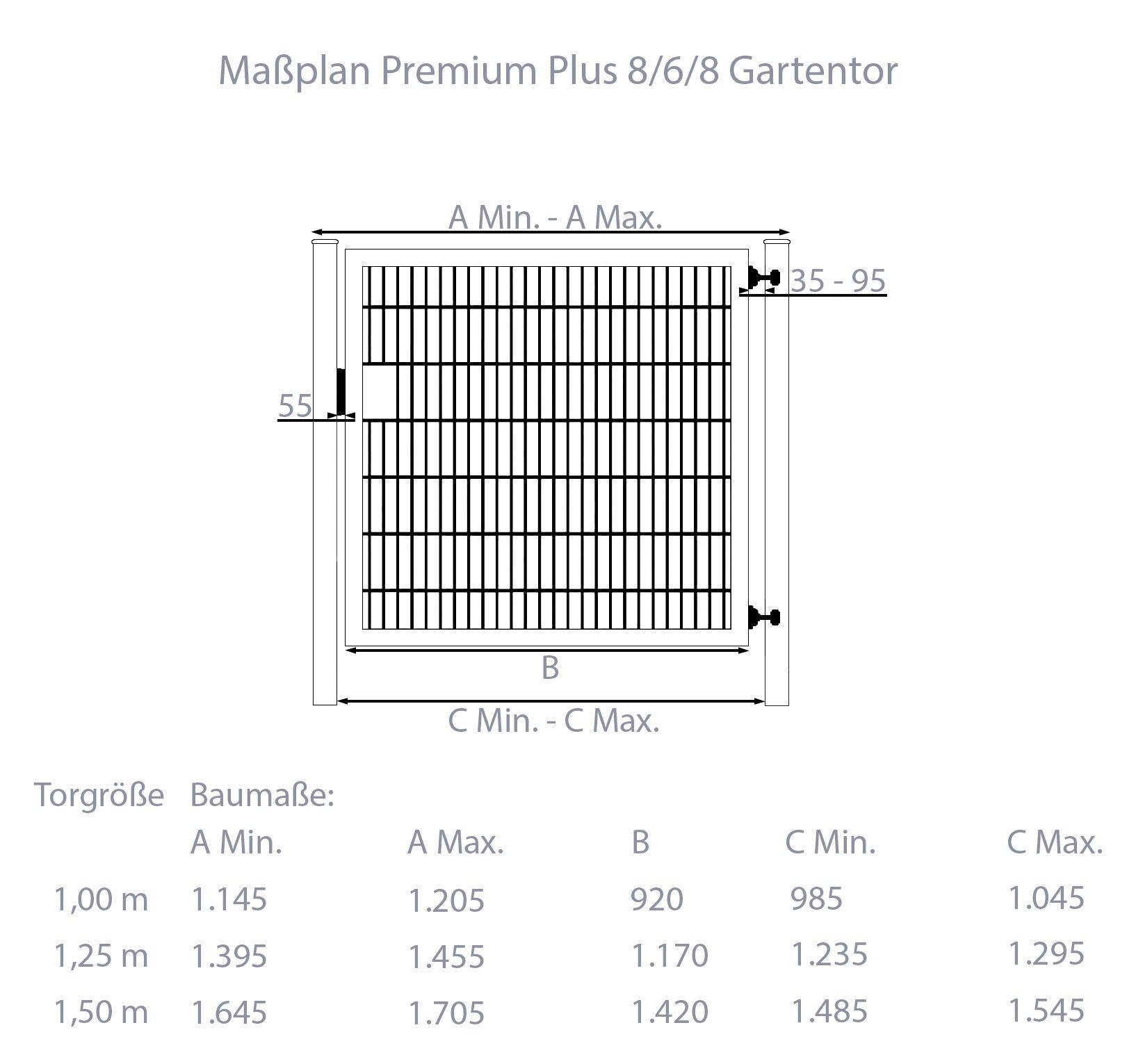 Technische Daten vom Premium-Plus Gartentor / Zauntor Höhe 160 cm Breite 125 cm: